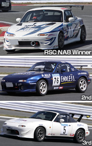このクラスのロードスターでもクムホタイヤにスイッチしてきたチームがかなりあるとの情報だが、直前に変えている場合などはプログラムの変更なども間に合わないので、どの程度のマシンが変えてきたのかは不明だが、予選では上位3台のNA6がコースレコードを出している。