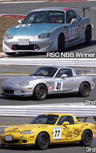 決勝スタート前には気温13度、路面温度25.5度、快晴とレースには絶好のコンディションの中、今シーズンのスタートが切られる。予選トップでコースレコードを塗り替えたNB8 11戸田裕一を先頭に77清水隆広41八田新一がほぼ同時に1コーナーに消えてゆく、その後は徐々に差を広める11戸田に対して41八田77清水は2番手争い、3周目に41八田が前に出てそのままポジションをキープ。