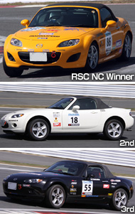 NCクラスはポールの86野上達也が1周目に2番手55高田英明に抜かれるが次周には取り戻し後半にはこちらも18ランマンとの2番手争いで8周のレースはチェッカーとなった。