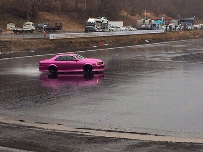 途中、パラパラと雨が降り、初めて走るサーキットで、スリックタイヤで走行するのは、かなりスリリングでした。↓