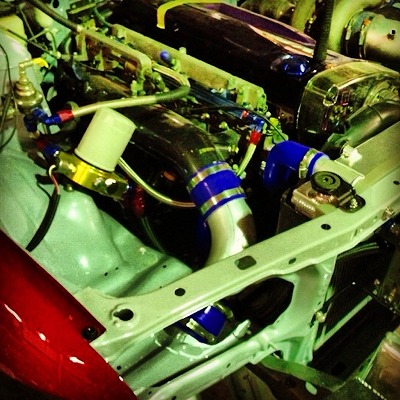 純正の場所だと、タービンが近く、熱でタンク内に気泡が出来るので移設して社外のパワステタンクにしました。