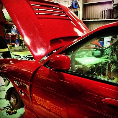 そしてロールバーを外して、車内、エンジンルームトランクルームの塗装工程へ↓