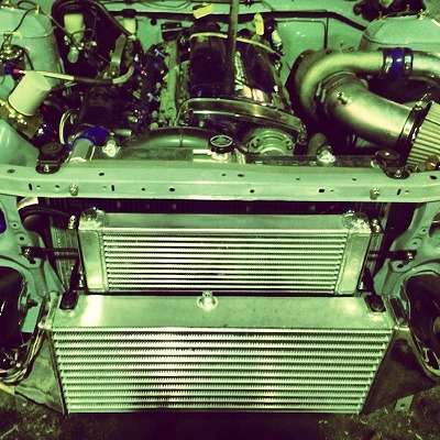 HPI製のインタークーラー、エンジンオイルクーラー、ラジエーターが組まれます↓