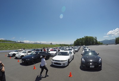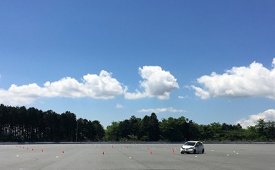 まずは、富士スピードウェイの駐車場を使った走行プログラム