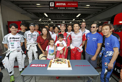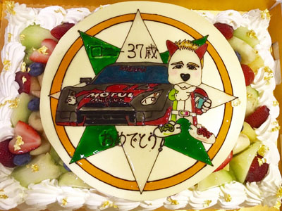 ニスモのスタッフと日産ドライバーの皆さんから誕生日お祝いです。