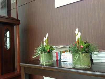 事務所に入ると門松課長がせっせと作った「屋内用門松ミニ」がお出迎えです。