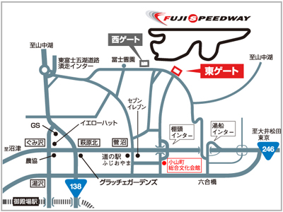 会場は富士スピードウェイから道路1本で行けるところにあります。