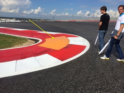 しかも、LMP2マシンは、車高が低い為、この縁石に乗るとアームが曲がってしまいます。↓
