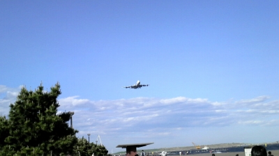 海沿いを、飛行機を観ながらランニングしています。