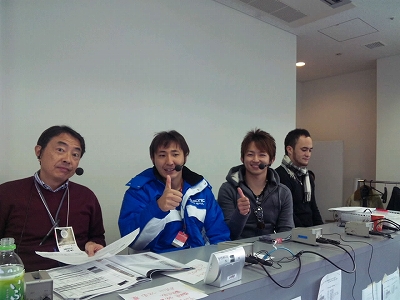 こちら、「エネオスサスティナレジェンドカップ」のドライバーミーティング。 大御所が勢ぞろいです。この方々がレースをします!お楽しみに。