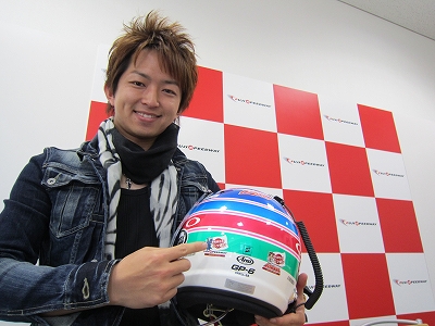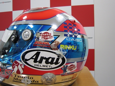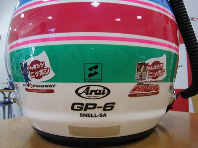 サーキットで準備してます! ヘルメットのステッカーもバッチリ貼りました!