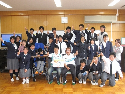 その後、静岡県立御殿場特別支援学校を表敬訪問し、高等部1年生約30名の みんなにプレゼントを贈呈したり一緒に写真を撮ったり交流を楽しみました。