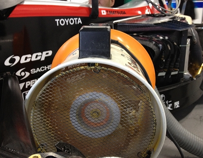 レースカーも暑さでクーラー系に扇風機を当てて冷やしている状態です↓