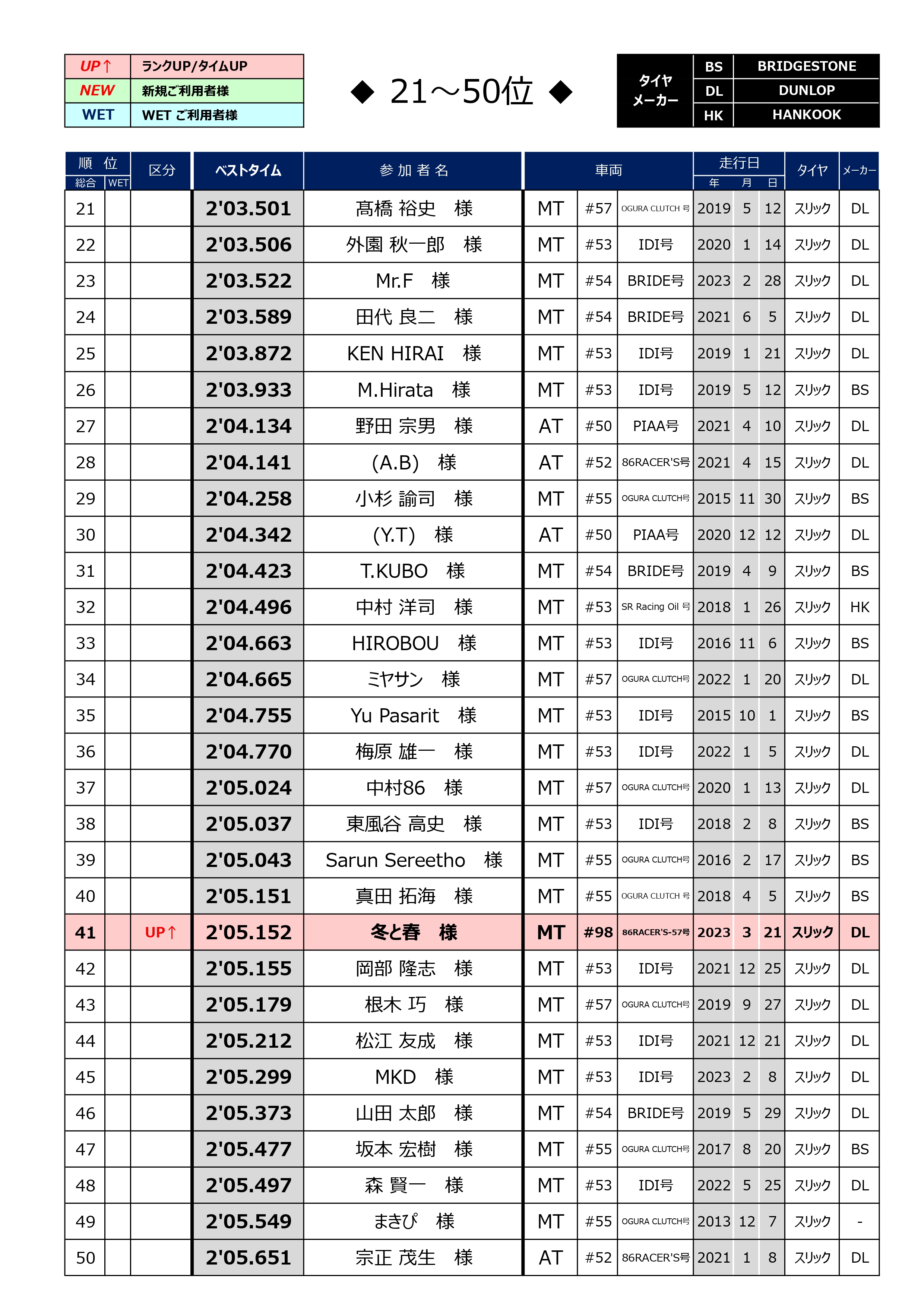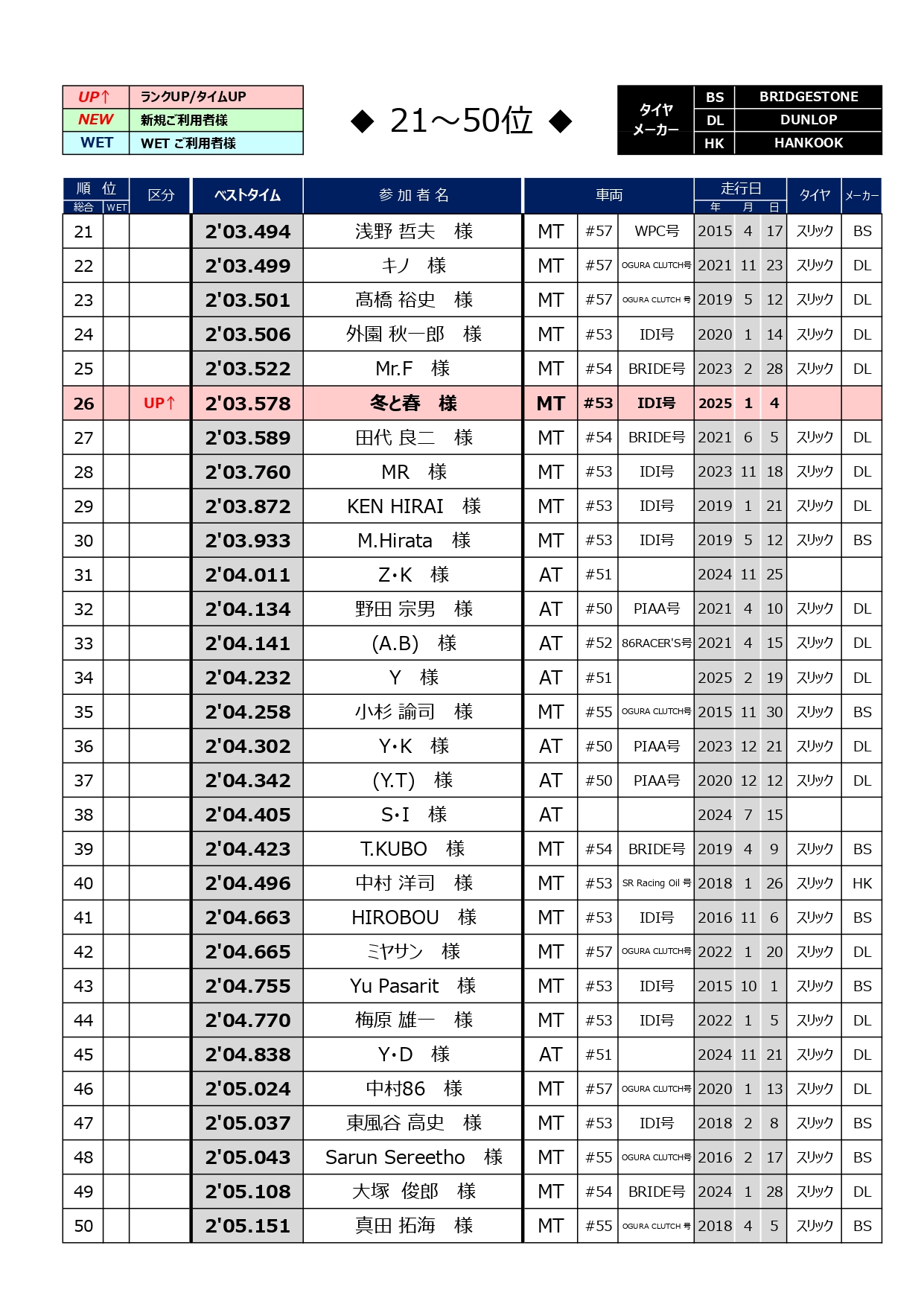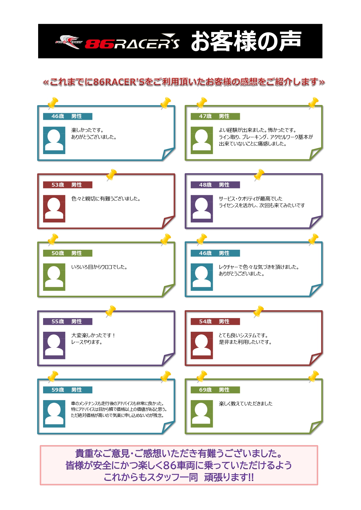 | 注意事項・ご誓約 | 走行中のいかなる事故に対しても、運転者の自己責任とさせて頂きます。事故に伴う施設・車両修理費用はお客様のご負担とさせて頂きます。 | |||||||||||||||||||||||||||||||||||||||||||||||||||||||||||||||||||||