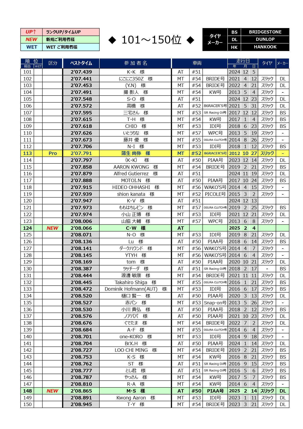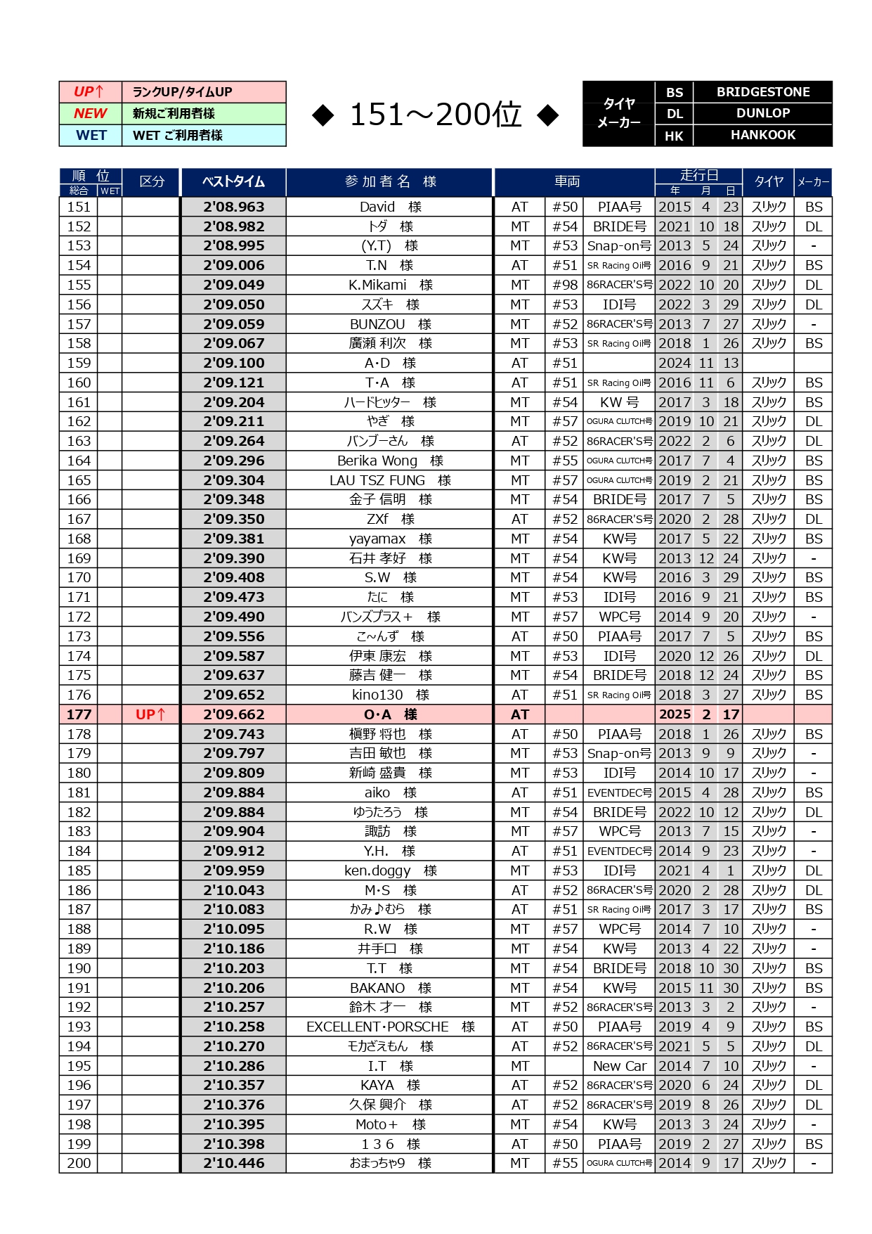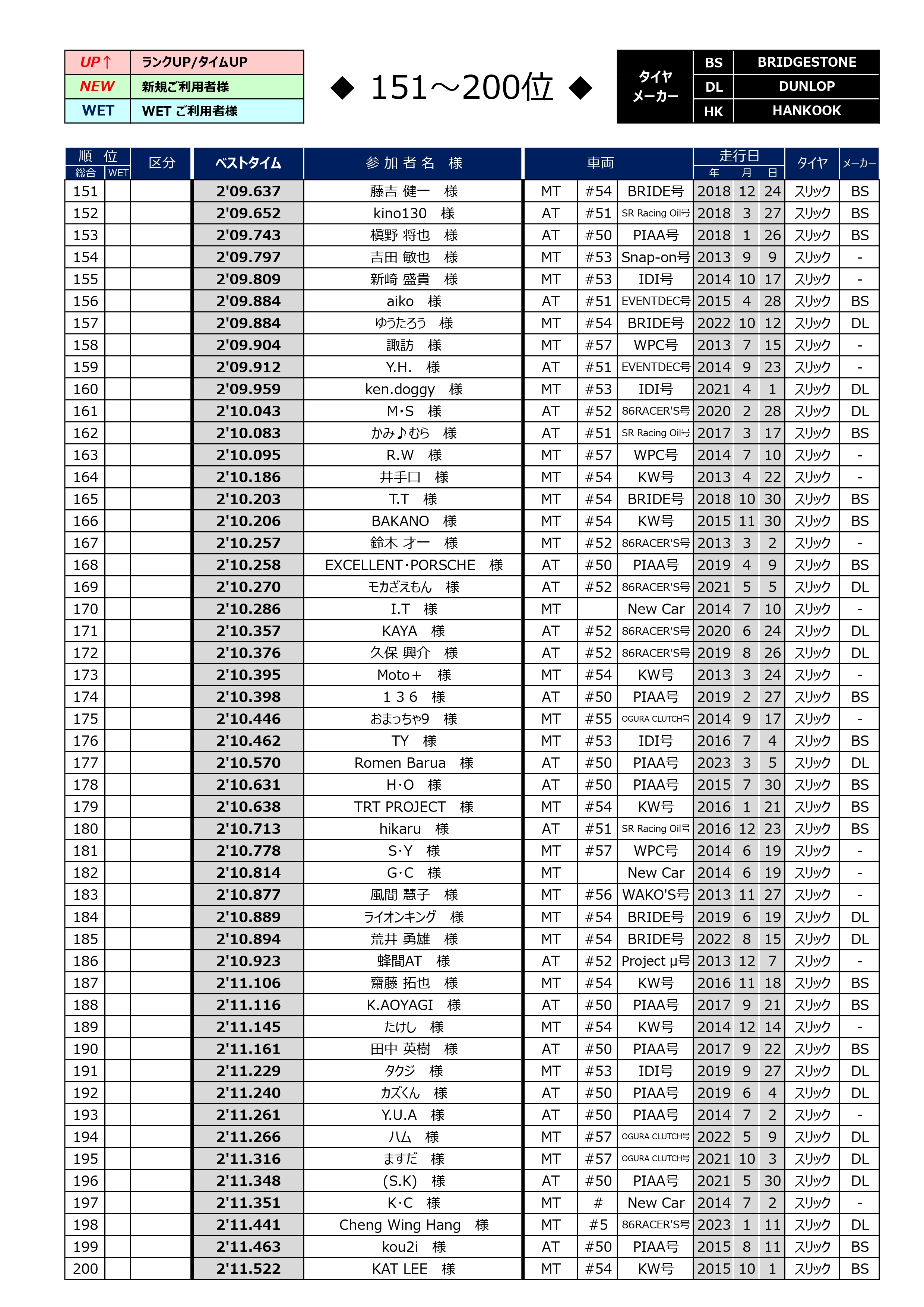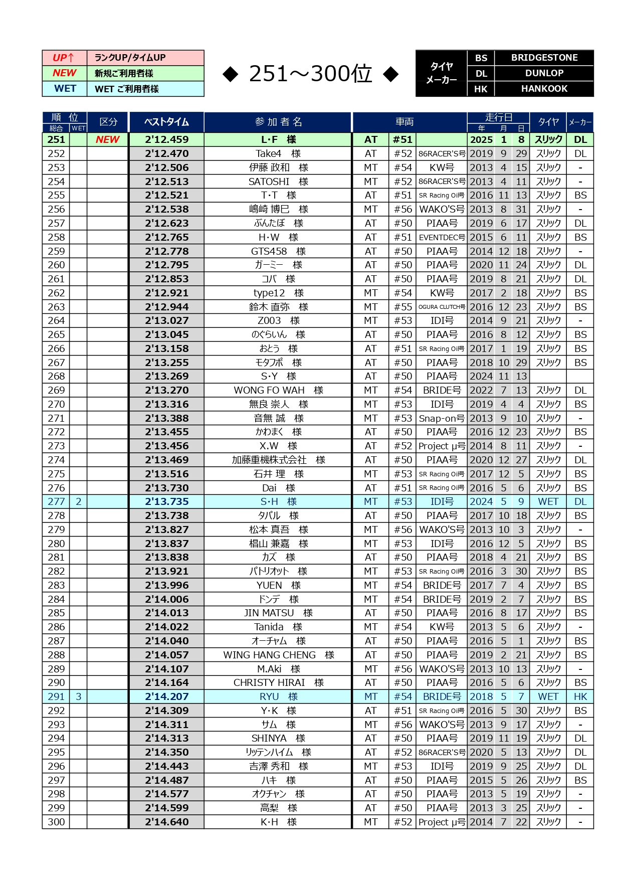 ※初回ご利用時は必ずNS-4枠またはT-4枠でご予約下さい。 S-4 :ラップタイムが2分10秒より速いペースで走行する方 NS-4:ラップタイムが2分00秒より遅いペースで走行する方 T-4 :最高速180km/h、ラップタイム2分20秒より遅いペースで走行する方(86レンタルはAT車両に限定) 走行枠は スポーツ走行月間スケジュール をご確認ください。 |