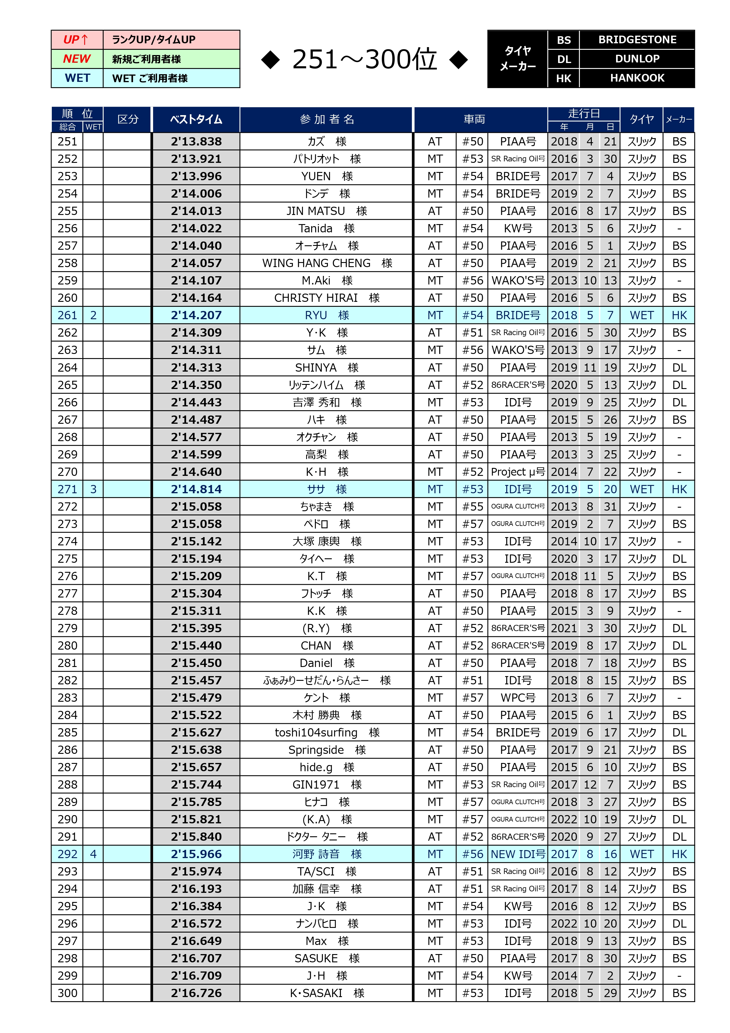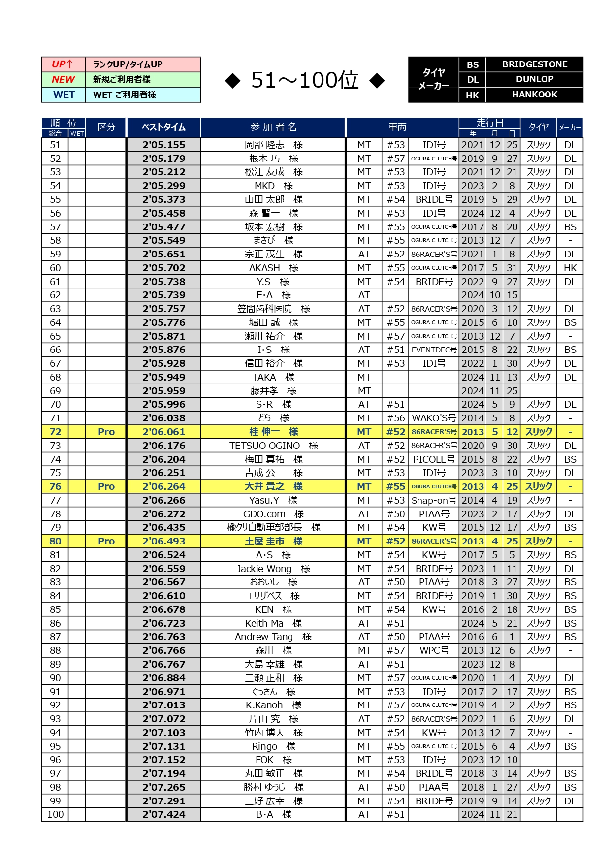 スポーツ走行 S-4、NS-4、T-4走行枠