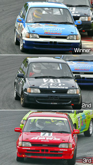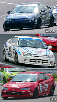 結果は36わっぱやが総合&NA1600クラス優勝、AE101では64杉岡謙広、MR2は7秋葉康隆、シルビアは96岡田竜也となった。