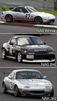 結果は77なかむらこそ逃げ切った形になったが、NA1600勢は激しい2位争い、また注目のカローラもカローラ同士や、そこにMR2も入り乱れて随所でのバトルが見られ、シルビアも最後まで目が離せない優勝争いとなった。