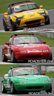 第三戦最初の決勝レースはロードスター・N1000・N1デミオの混走レース。正午の気温は26℃、路面温度が37℃、昨シーズンは雨続きのシリーズだったがこの日はドライコンディッションで行われそうだ。