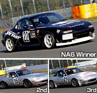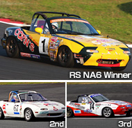 77清水は今期初優勝、「ギリギリだったけれど勝てて嬉しい!シリーズ争いにも加われているので、最終戦でも頑張ります」と話し、NA8クラスで久々に出場して優勝した1山形は「昨年の事は忘れてください!(表彰台の)一番高いところに乗れるのは嬉しいです!」と喜びを語っていた。両クラスともシリーズチャンピオンの行方は最終戦まで持ち越された。