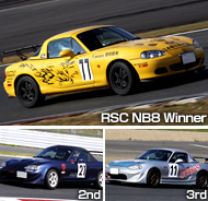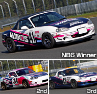総合優勝した22小林は表彰台中央で「この二人(二位15毛塚、三位62前田)に連れられて速く走れました」と話し、NB6優勝の41八田は「ちょっと接触してしまいましたけれど楽しかった」との感想、デミオクラスでは66望月が優勝。