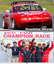 一方N1000クラスやロードスターは最後まで目が離せない展開となり、ロードスターはトップの65 橋/中島組と1雨宮/大野組が終始争い、ラスト2ラップで65中島が前に出てそのまま優勝した。N1000クラスでも残り10周程度になったところで上位マシンが続々とベストラップをたたき出しながらの争いが続き、その中でも前に出た7松波/渡辺/深沢組が前に出て他車を引き離しにかかり優勝した。