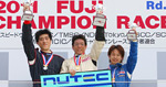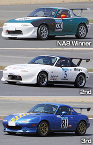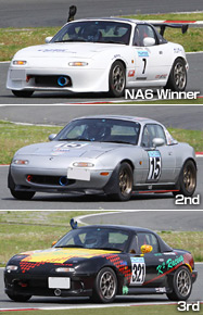 表彰台で総合優勝の41八田は「もっと引き離せたら楽になっていたのですが楽しいレースが出来ました」と話し、NA8クラス230石渡は「後ろばかり気にして走っていました」NCの21新井は「自分ではレースは全然なってなかったです」