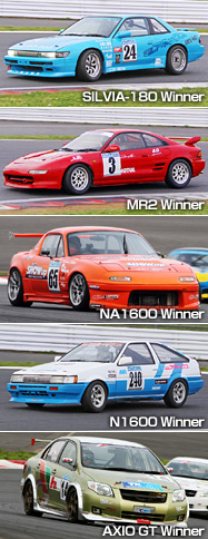 シルビア180クラスでは24瀧下がトップの座をゆずらずにそのままチェッカーをうけ、カローラアクシオクラスは14TKM Power magic里山勉が一旦は二番手になったものの後半で巻き返して優勝した。