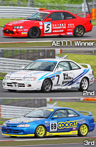 一周を終えてトップで戻ってきたのは37四季の森歯科IDIウィナーG86の秋元優範、そこに5番手スタートの65 高橋商店アクレSPM・NA6の高橋和雄が徐々に順位を上げてきてレース中盤にはついにトップに立ちそのままチェッカーを受けた。