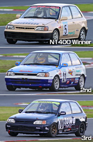 第3戦最後の決勝レースとなったのは、16:20スタートのスターレットEP82とカルタスの一騎打ちとなっているN1400クラスのレース。夏至に近いこの時期、午前中の天気から比べるとこの時間でもかなり明るくなってきて、風もコース上と上空と逆に吹いているように雲が流れていっている。