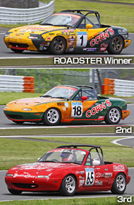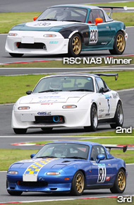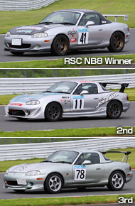 NA8とNB8が入り乱れての総合争いはポールからスタートした41八田が制したが、230石渡も総合4位、クラストップでチェッカーを受けた。NCクラスも接戦で、間にNB8クラスを挟んでスタートした39増田と144 Moty's☆IDI☆雷神NCのAquira Stanleyが最終ラップまでバトルを続け、39増田が優勝した。