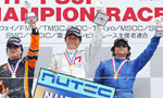 ポールから逃げ切り優勝した41八田は表彰台で「後ろから来る戸田選手が気になりました。全戦勝つつもりで頑張ります」と話し、NB8 230石渡は「前回はあまり競り合いにならなかったのですが、今回はそんな中で前に出られて嬉しいです」と話し、NC優勝の39増田は「前半は慎重になりすぎました。次回も頑張ります」とコメント。