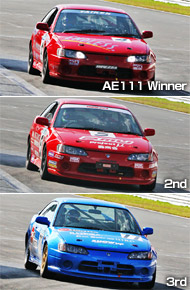 この日最初の決勝を迎えたAE111クラス。チャンピオンの可能性があるのは3名のドライバー。朝の予選でもこの3台がスターティンググリットをポールから占めていく。