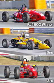 FJ1600ではこちらはチャンピオンを決めた3プロジェクトKKマースSK02川村正徳がまさかの最後尾スタート、トップからのスタートは20ROMANTEC・FV95の柿島昭一。決勝では0 OSAMUが好ダッシュで1コーナーまでに前に出て、トップに立ちその位置をキープ、2番手争いも激しかったものの、結局37 DRAGONが4周目には2番手に上がりそのままチェッカーを受け、0OSAMUがチャンピオンを獲得した。2位に37DRAGON、3位に10加藤と続いた。