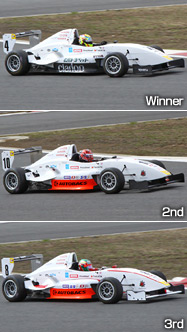 これで2戦連続ポールトゥウィンを決めた4平川は「周りの皆様に感謝しています。次回のもてぎでは、優勝を意識せずに常に全開で頑張ります」と語り、連続2位表彰台の10松下は「昨日はタイヤの使い方が難しかったので今日は考えながら走っていましたが、もう少し勉強します」と語った。