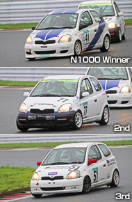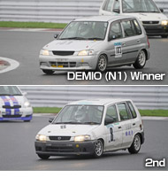 N1400 / N1000 / DEMIO (N1) 本日最後のレースとなったN1400/N1000/デミオ(N1)クラス、午前中の予選でトップだったのはN1400クラスコースレコードを更新した31号車MIDLANDμ日建重機82の黒須聡一、2番手には33号車HMP★東伸★ED★EP82の船木宏。N1000クラスのトップは7号車WEDSアドバンEDヴィッツの松波太郎。デミオ(N1)は阿部組WMデミオRPM/HのR.P.M/Hがトップからのスタートとなる。このクラスも毎回とても激しいレースとなるが、今回もまたとても見どころ満載の激しい争いとなった。