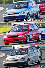その後も徐々に順位を上げ、それまでトップを死守していた31黒須とのバトルになり、5周目にはトップに出た。とはいえそこから引き離すことは出来ずに、毎周回ごとにコントロールラインを越えるときには、その二台にやはり7番手スタートから順位を上げてきた5 アネックス内藤鈑金μEP82の水谷明彦も加わり三台での激しい争い、チェッカーもほぼ三台並んで受けた形でゴールしたが、21大竹と31黒須との差は0.070秒、さらに31黒須と5水谷との差も0.165という見ごたえのあるレースとなった。