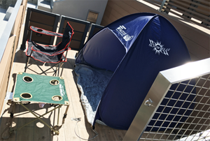 | スペース | W252cm × D240cm 備えつけのイス、テーブル、小型テント等はございません ※テントをお持ちこみする場合の注意事項 最大許容テントサイズ H140cm × W200cm × D180cm 飛散防止のため テントは四隅を備え付けのフックに固定してご利用ください |