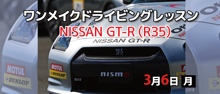 "サーキットを一度走ってみたい!!という方などを対象とした、走るオフ会“ワンメイクドライビングレッスンをNISSAN GT-R(R35)オーナー様を対象に3月6日(月)に開催を致します。