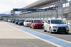 先導車の後に続いて、国際レーシングコースの走行を行ないます。