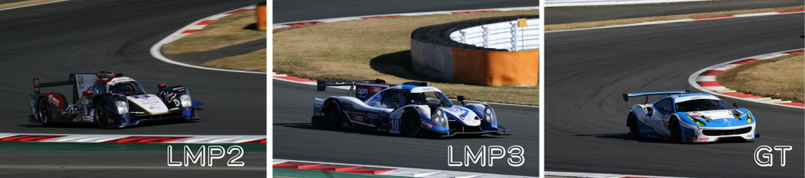 このシリーズは4つのスポーツカー・カテゴリー:LMP2、LMP3、GT、GT CUPの混走で行われる。