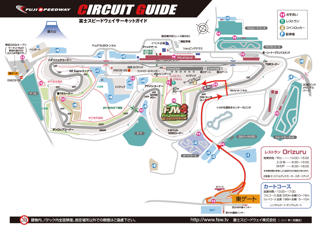 富士ジュラシックウエイ にお越しの際は富士スピードウェイ東ゲートよりご入場ください。