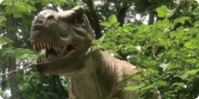 恐竜模型の最大全長は10m!それぞれ独自の鳴き声を発するものもあり、迫力満点です。写真撮影用恐竜の卵やお子様用の「乗れる恐竜」もご用意し、皆様のご来場をお待まちいたします。