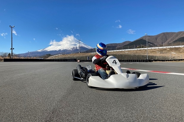 富士スピードウェイのコースレイアウトをイメージした、コースをレンタルカートで走行できます!初心者から上級者まで、気軽にモータースポーツを体験できます、二人のりタンデムカートはご家族でも楽しみ頂けます!ヘルメットやグローブの無料貸し出しもあるため、手ぶらで体験いただけます!