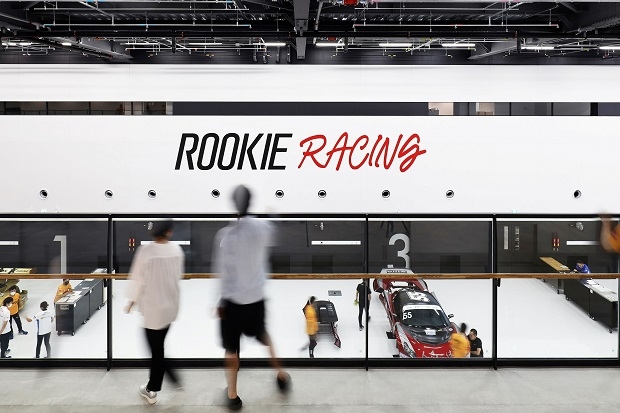 モリゾウ選手ゆかりのレーシングカー3台やAE86電気(BEV)の展示、水素を楽しく学べるコンテンツなど、レース期間中は特別イベントを実施します。ウェルカムセンターの2階は連絡デッキを通じてルーキーレーシングガレージとつながっており、ここではプロのレースメカニックの仕事ぶりを見学することができます。3階の屋上テラスは、好天なら富士山から富士スピードウェイ第3セクターが一望できる絶景をお楽しみいただけ、決勝日に行われる打ち上げ花火中も解放されます!その他、キッズエリアも設置されるので、休憩などにもお気軽にご利用。
