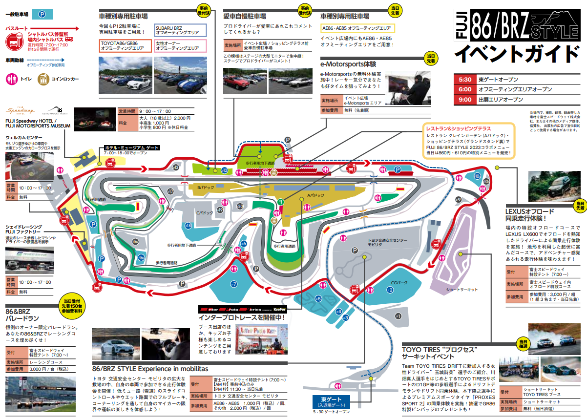 ■FUJI 86/BRZ STYLE 2023ご来場の際の一般駐車場及び場内無料シャトルバスについてご案内いたします。