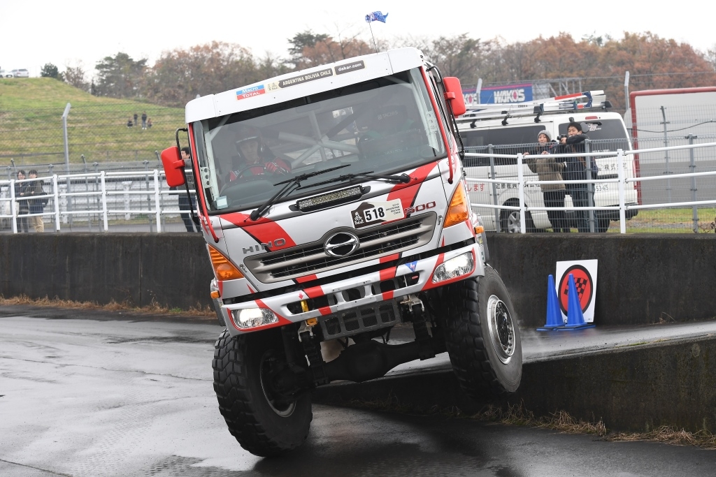 ダカールラリーに参戦している「トヨタランドクルーザー」、「日野レンジャー」に同乗や搭乗体験を楽しむことができます。