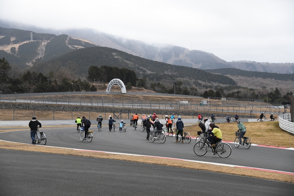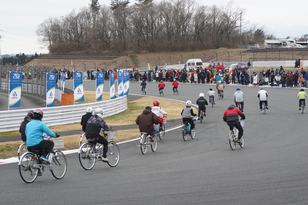 2019:01:12:17:43:06富士スピードウェイでは、1月12日(土)に、「あさひスーパーママチャリGP 第12回 ママチャリ日本グランプリ チーム対抗7時間耐久ママチャリ世界選手権」が行われ、851台、17,900人が参加しました。