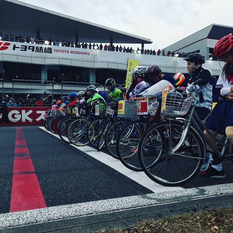 ママチャリグランプリは、FIA 世界耐久選手権(WEC)やSUPER GTなど自動車レースの舞台となるレーシングコースを使い、1台のママチャリを最大10名のチーム内で交代しながら7時間を走りぬく、正月恒例となった自転車イベントです。