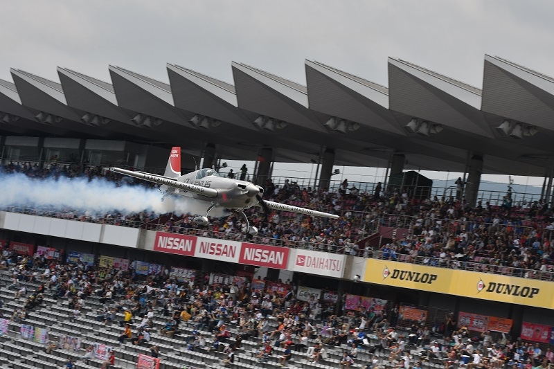 また、今回のフライトパフォーマンスでは室屋選手とともに、SUPER GTに参戦する自動車メーカーが結集し、ホームストレート上でパフォーマンスを披露します。